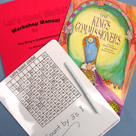 The book: The king had too many commissioners. Someone should count them. The king and his advisors start counting. One advisor counts by 2s; another advisor counts by 5s. The princess uses tens and ones. Who is right?